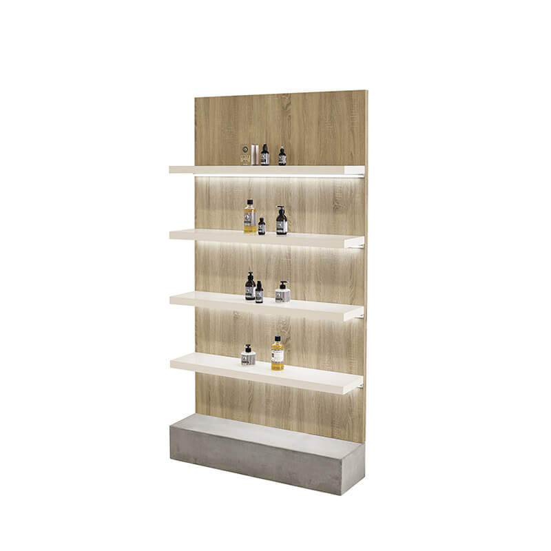 Questo espositore per parrucchieri di fascia alta è una soluzione di design pensata per valorizzare al massimo i prodotti professionali all’interno del salone. Il solido basamento in cemento conferisce stabilità, carattere e uno stile moderno di forte impatto estetico, perfetto per ambienti contemporanei ed eleganti.