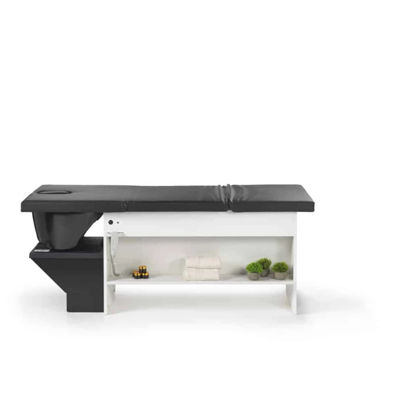 Il lettino può essere configurato con funzione massaggio, ideale per aumentare il livello di relax e trasformare ogni trattamento in un vero rituale benessere. Sono inoltre disponibili diversi optional, che consentono di personalizzare il servizio in base alle esigenze del salone: