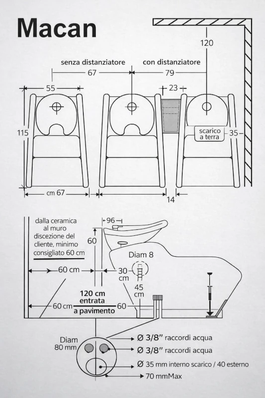 La struttura è progettata per garantire comodità al cliente e praticità all’operatore durante i servizi di lavaggio. Il lavatesta viene fornito completo di doccino e miscelatore già installati, permettendo un’installazione rapida e immediata, senza costi aggiuntivi o interventi tecnici complessi.