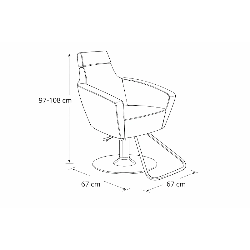 La poltrona è realizzabile in diverse colorazioni, permettendo una completa personalizzazione in base allo stile del salone. È dotata di pompa idraulica professionale, che consente una regolazione dell’altezza fluida e precisa. La base può essere configurata con piede tondo oppure piede a stella, entrambe soluzioni solide e affidabili per l’uso quotidiano.