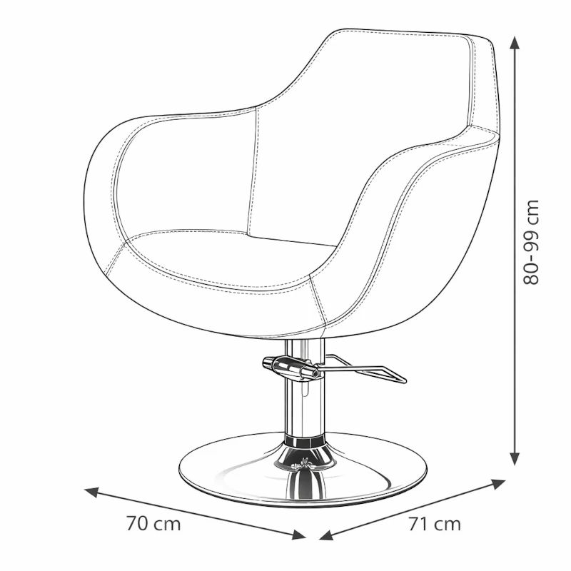 Questa elegante poltrona per parrucchieri è pensata per completare in modo funzionale ed elegante qualsiasi progetto di arredamento parrucchieri professionale. La seduta in schiumato rivestito assicura una combinazione ideale di comfort, solidità e resistenza, perfetta per l’uso quotidiano in salone.