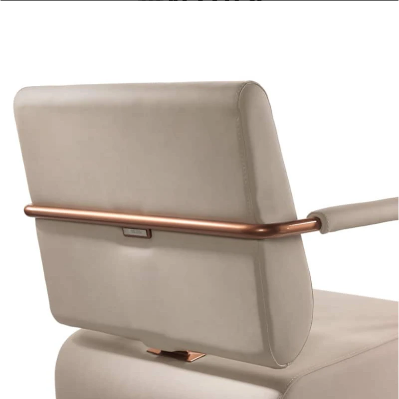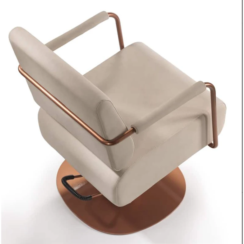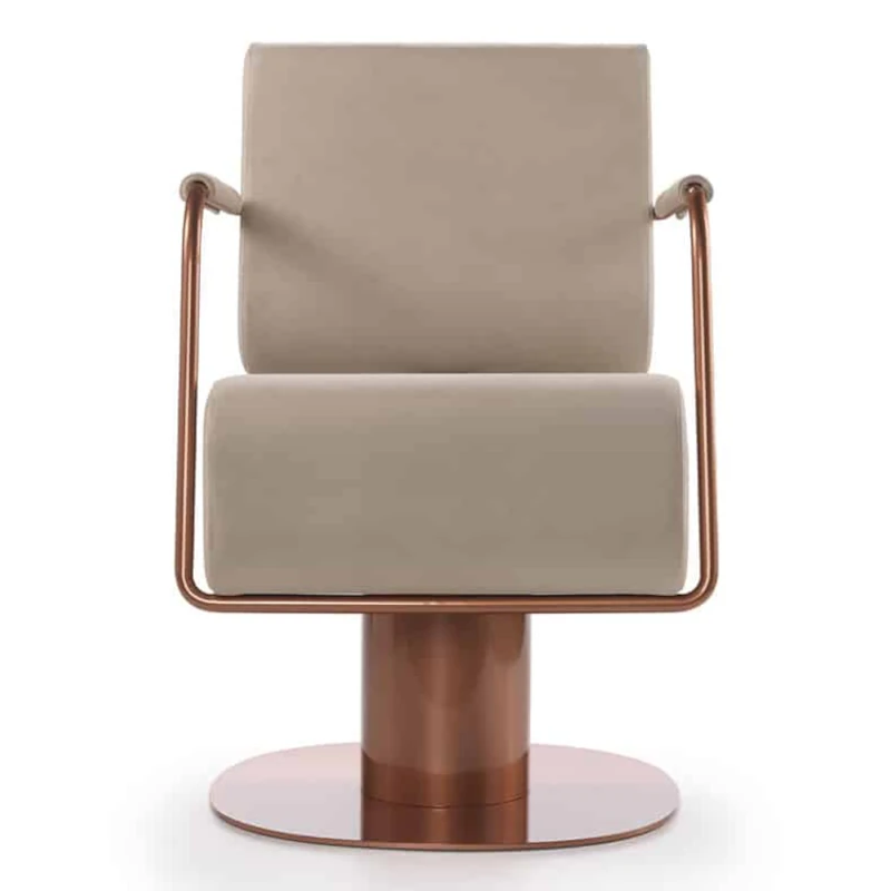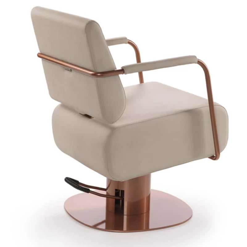 Questa poltrona da parrucchieri color rame è pensata per chi desidera dare carattere e personalità al proprio salone attraverso un progetto di arredamento parrucchieri dallo stile industriale e contemporaneo. La finitura rame sugli elementi strutturali dona un impatto estetico ricercato, ideale per ambienti moderni e di forte identità visiva.