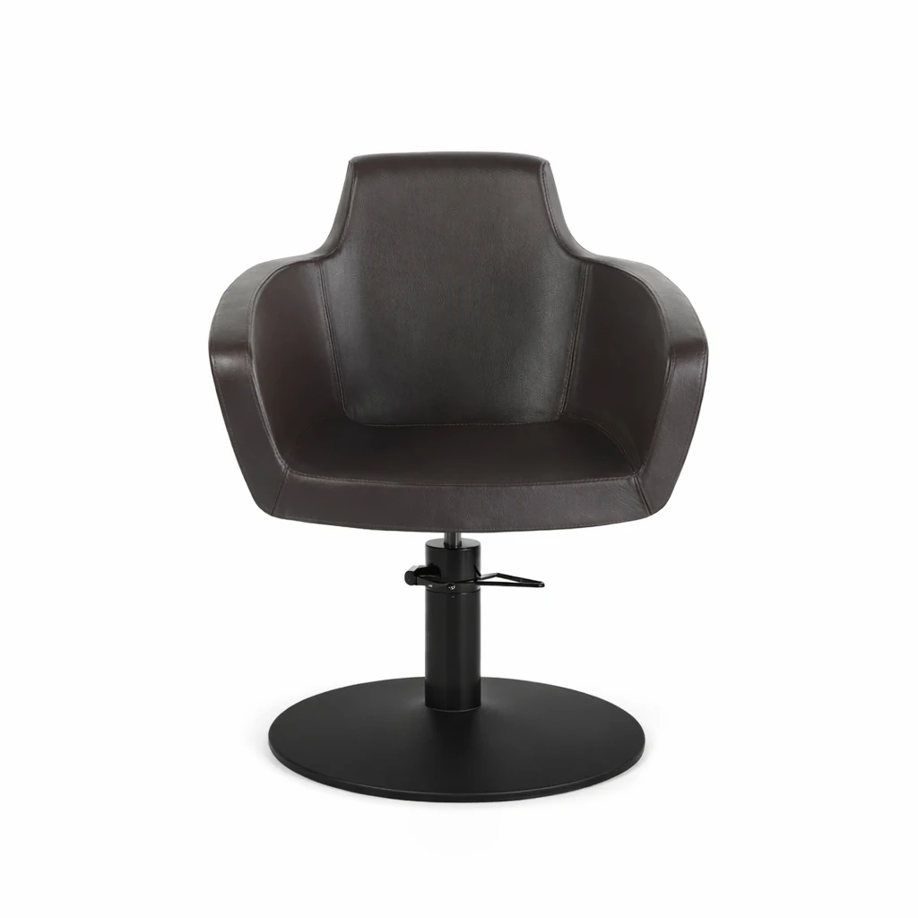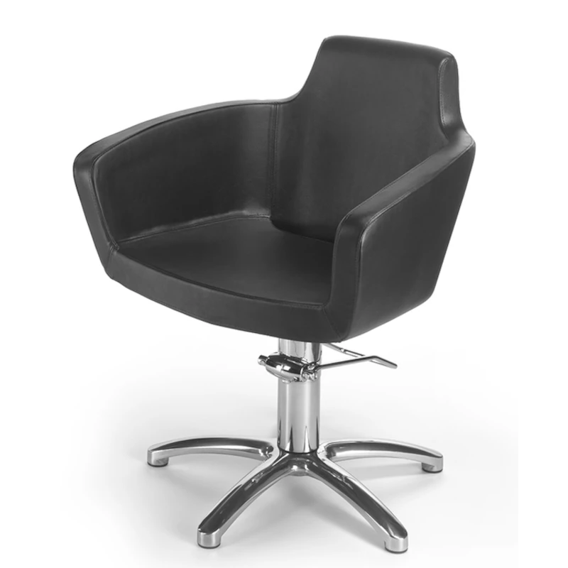 Il design avvolgente con braccioli integrati offre stabilità e comodità al cliente, migliorando l’esperienza all’interno del salone. La poltrona è dotata di pompa idraulica professionale, indispensabile per regolare l’altezza in modo preciso, fluido e affidabile durante l’attività quotidiana.