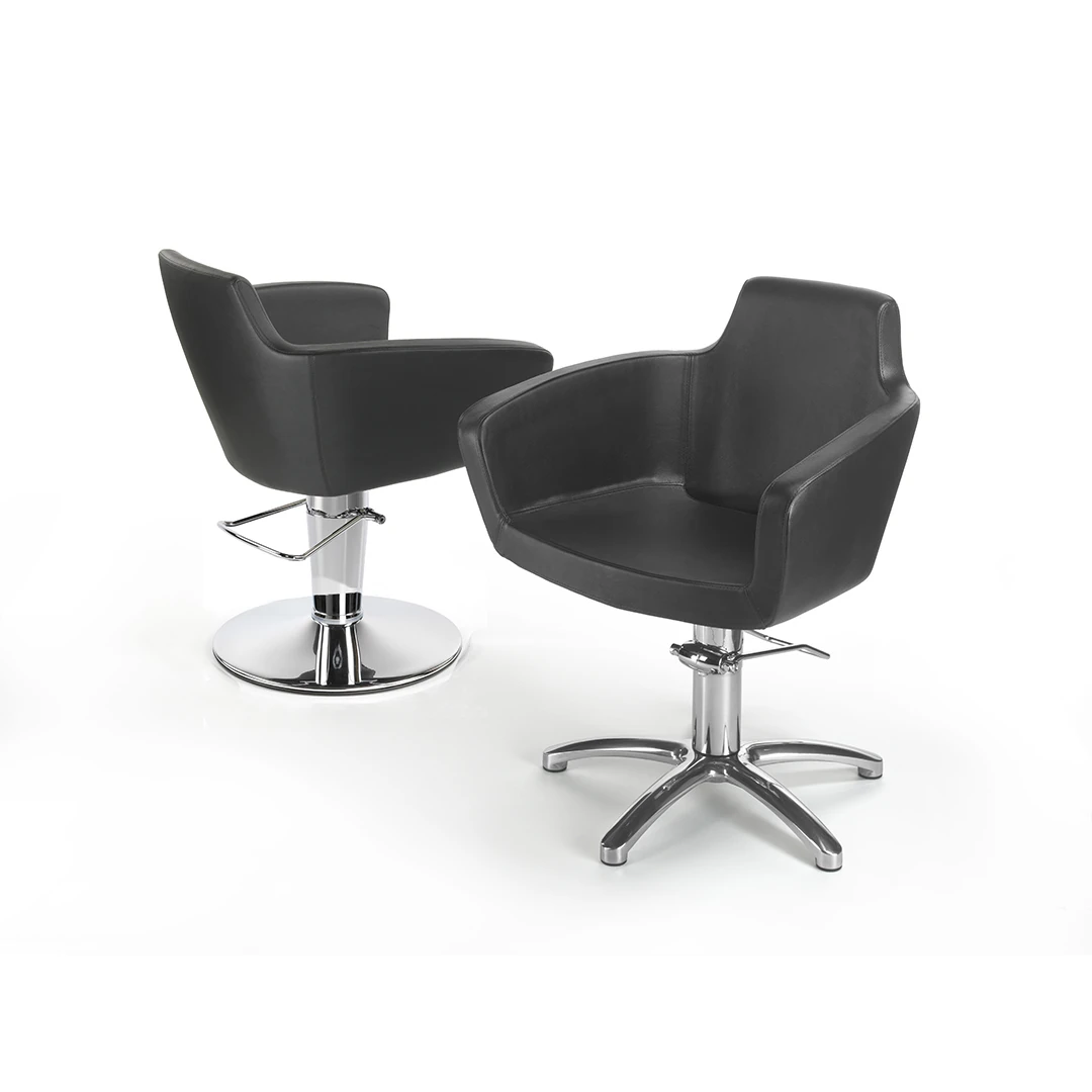 È possibile personalizzare la base scegliendo tra piede a stella oppure piede tondo, entrambe soluzioni robuste e studiate per garantire massima stabilità e sicurezza. Grazie alla sua versatilità, questa poltrona si integra perfettamente in qualsiasi progetto di arredamento per parrucchieri, sia moderno che classico.