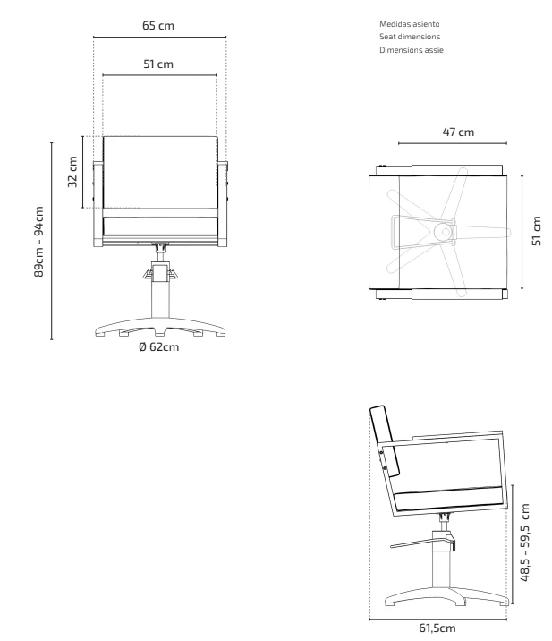 La seduta è dotata di pompa idraulica per regolare facilmente l’altezza, garantendo massima comodità sia per l’operatore che per il cliente.