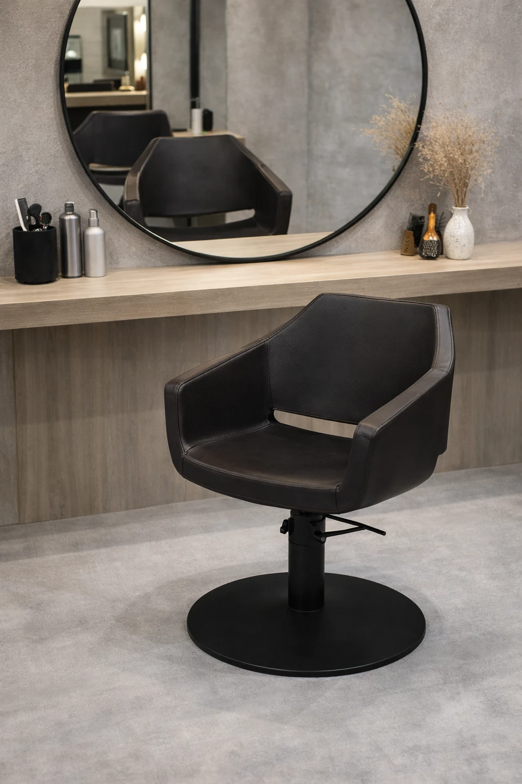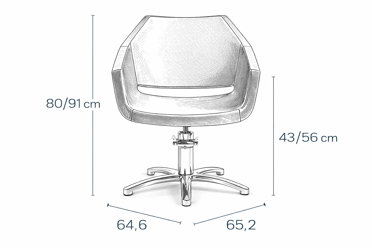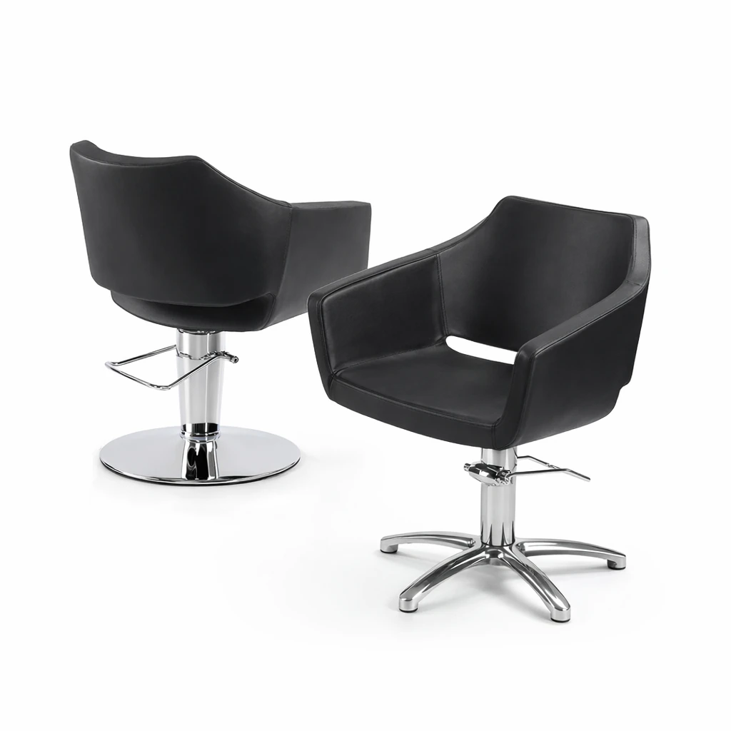 La poltrona può essere configurata con base tonda oppure base a stella, entrambe progettate per offrire stabilità e sicurezza. Grazie al suo design versatile, si inserisce perfettamente sia in ambienti moderni che classici, risultando una scelta funzionale e affidabile per l’arredamento per parrucchieri professionale.