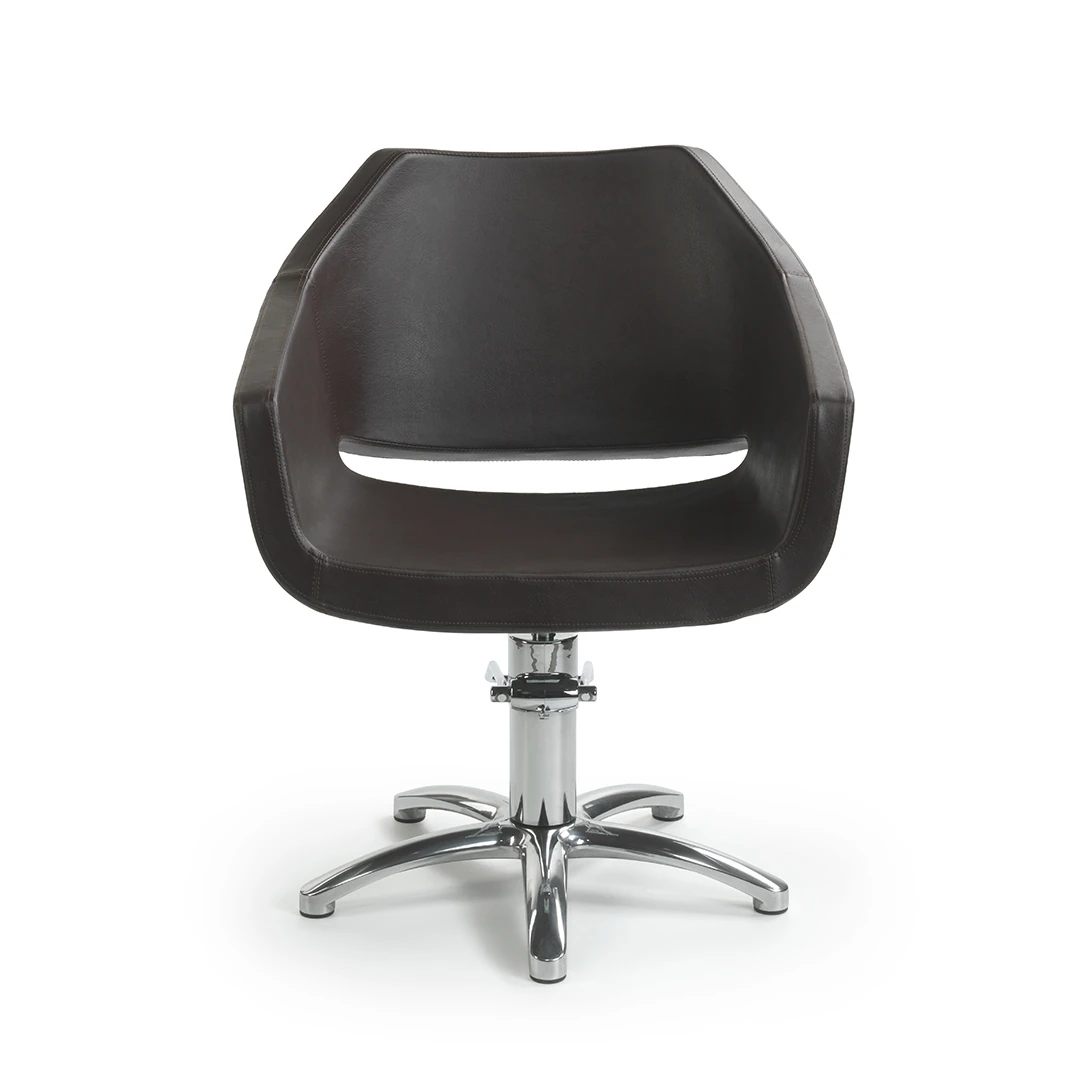 La forma ergonomica con schienale e braccioli integrati assicura una postura comoda per il cliente durante ogni servizio. La pompa idraulica integrata consente una regolazione dell’altezza fluida e precisa, facilitando il lavoro del professionista e migliorando l’operatività quotidiana in salone.