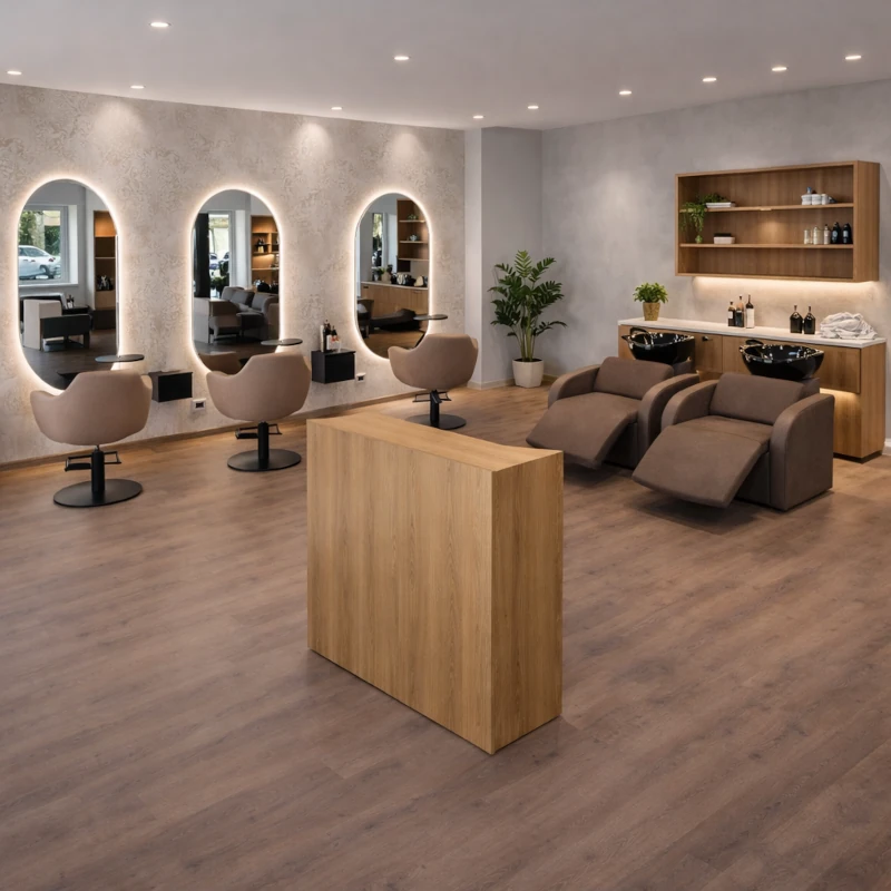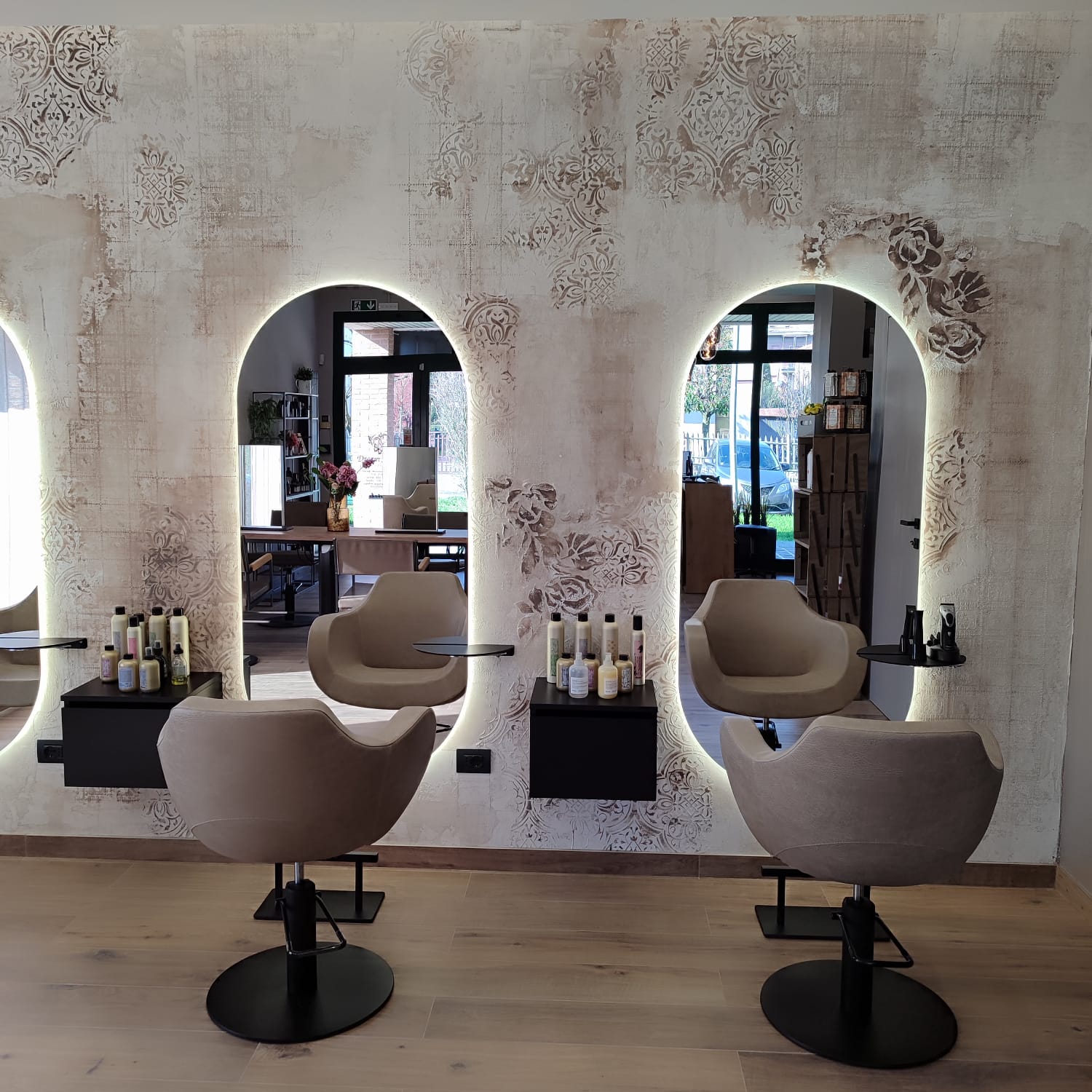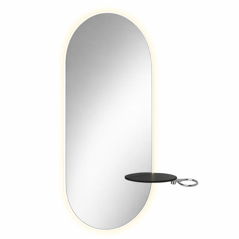 La specchiera ovale con illuminazione LED rappresenta una soluzione moderna ed elegante per arredare postazioni di lavoro professionali all’interno di un progetto di arredamento parrucchieri contemporaneo. Grazie al suo design pulito e alla luce integrata, questo specchio valorizza ogni postazione di taglio, contribuendo a creare un ambiente luminoso e accogliente per il cliente.